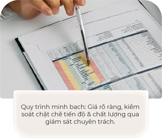Quy trình minh bạch: Giá rõ ràng, kiểm soát chặt chẽ tiến độ & chất lượng qua giám sát chuyên trách.