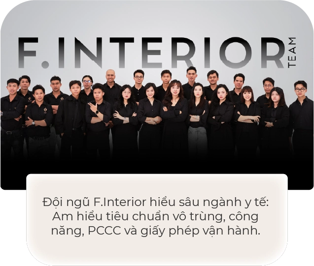 Đội ngũ F.Interior hiểu sâu ngành y tế: Am hiểu tiêu chuẩn vô trùng, công năng, PCCC và giấy phép vận hành.