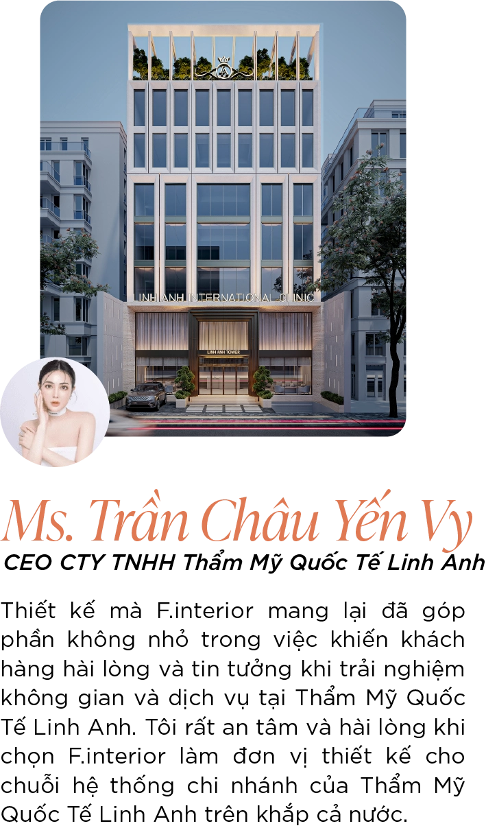 Khi thị trường đang đứng trước nhiều vấn đề như thiết kế không đạt chuẩn pháp lý y tế, thiếu tính thương hiệu và trải nghiệm, ngân sách bị đội lên so với dự kiến, F.Interior đã hiểu và áp dụng bộ tiêu chuẩn kép giữa công năng & thẩm mỹ kết hợp đúng quy định của Bộ Y tế để đảm bảo an toàn và hiệu quả khi thiết kế, thi công nội thất phòng khám.
