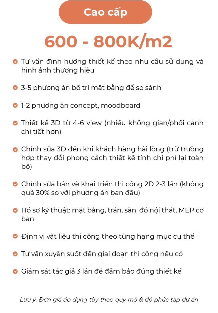Lưu ý: Đơn giá áp dụng tùy theo quy mô & độ phức tạp của dự án